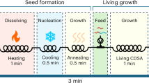 Despite the current success in controlling 2D nanostructures, understanding the 2D crystallization process in solution is still in its infancy. This study is of great importance as it allows the design of new polymers, broadening the scope of 2D nanostructures34,35,36. To this end, the Manners group recently reported a growth kinetic study on the formation of 1D nanofibers37. They observed that the conformational effect from the amorphous shell block of the BCPs disturbed the self-assembly process so that the kinetics were more complicated than those of analogous living polymerization and assembly of small molecules38,39,40. In order to obtain a clear kinetic study, controlled self-assembly of homopolymers is required to eliminate this conformational effect of BCPs. However, CDSA from homopolymers without a stabilizing shell block is extremely challenging, with only a few successes reported by the Manners group, who used a novel strategy of introducing a charged end group into homopolymers, thereby inducing electrostatic repulsion10,41. Due to these limitations, the kinetics of polymer self-assembly, especially quantitative 2D growth, have not been studied yet.