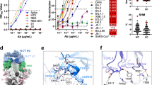 Huh-7 cell line (acquired from ATCC, not authenticated), which expresses ACE2 receptor, was infected with pseudovirus expressing the full length of SARS-CoV-2 Spike protein and luciferase reporter gene in the presence and absence of serial dilutions of testing antibodies. Viral entry to the cells was quantified using BriteliteTM plus Reporter Gene Assay System. In separate studies, pseudoviruses encoding wild-type or different mutant S protein (GenScript, SARS-CoV-2/Wild-type (WT), SARS-CoV-2/D614G, SARS-CoV-2/V367F, SARS-CoV-2/W436R, and SARS-CoV-2/D364Y) were incubated with a serial dilution of purified antibodies (starting from 100 µg/mL, three folds dilution for eight points in triplicates) at room temperature for 1 h. The mixture was then added to ACE2-overexpressing HEK293 cells (acquired from ATCC, not authenticated; 2 × 104 per well) cultured in DMEM containing 10% FBS in triplicate. Following infection at 37 °C 5% CO2 for 48 h, luciferase activity was determined using the Promega Bio-Glo luciferase assay (Promega, Catalog #G7491) system. The dose–response curves were plotted with the relative luminescence unit against the sample concentration. Non-linear regression was used to calculate IC50 using GraphPad Prism 6. WT pseudovirus was tested two more times with similar results.