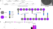 In order to explore MreC’s ability to self-associate, negative-staining EM and sedimentation velocity analytical ultracentrifugation (SV-AUC) were employed to directly visualize and measure the hydrodynamic properties of the periplasmic forms of MreC from three rod-shaped bacteria, P. aeruginosa (MreCPa), Escherichia coli (MreCEc), and Acinetobacter baumannii (MreCAb). The sedimentation profiles of MreCEc and MreCAb displayed multiple peaks in a lower range, including 3.8 s and 9.8 s (MreCEc) and 8.8 s (MreCAb), as well as peaks with much higher s values (40.3 s and 47.2 s for MreCEc and MreCAb, respectively). These forms generated heterogeneous patches as well as thin filaments that on occasion displayed a tendency to associate laterally, as seen on EM negative-staining images. MreCPa, which also presented sedimentation peaks in comparable ranges (3.6 s, 8.0 s, and 44.5 s), was able to further associate into very large species (320 s, with a fitted f/f0 = 2.6, which suggests a highly elongated shape) (Fig. 1b and Supplementary Fig. 2). On negative-staining EM grids, MreCPa resembled short, curved filaments reminiscent of ‘beads on a string’, that, upon further concentration, displayed a tendency to self-associate laterally (Supplementary Figs. 3a–f).