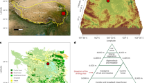 Several previous studies have shown that the climate at a millennial time scale on the eastern Tibetan Plateau is strongly impacted by monsoons, particularly the East Asian summer monsoon, which tracks changes in the westerlies and continental warming that are largely a function of mid- to high-latitude changes55,56. Thus, the past climate change in our study was inferred by the synthesized record of Northern Hemisphere (30°–90° N) temperature anomaly since the last deglaciation57,58. The physical surface area is a prerequisite for suitable habitat development and taxa shifts. Hence, we modelled the past glacier-cover changes first (Fig. 1b). We considered the catchment area that is available for plant colonization to be ice-free. Past ice extents were estimated with the numerical ice-flow model GC2D59. We ran simulations on the present-day topography, based on a 90-m resolution SRTM digital elevation model. Climate was imposed through a vertical mass-balance profile that we estimated from present-day conditions. Based on the spatially averaged mean elevation of present-day glaciers in the vicinity60, we estimated an equilibrium line altitude (ELA) of ~5200 m61. We estimated the maximum ice accumulation rate to be 0.25 m yr−1, based on different gridded precipitation data sets (HAR62, GPCC63). Guided by observations from modern Tibetan glaciers64, and by matching the present-day distribution of ice cover in the wider region of our study area, we estimated a mass balance gradient of 0.0115 m yr−1 m−1. Glacier and snow cover through time were interpolated from the corresponding ▵ELA based on an integrated temperature lapse rate of 0.55 °C 100 m−1 in the Hengduan Mountains65 and reconstructed past temperature. To clarify, the ice-flow model only simulated the past flow of ice and any concurrent advance and retreat.