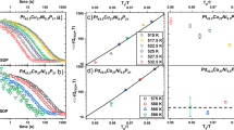Details of the EML device used for the measurements can be found in ref. 60 Metallic-glass samples of weight 0.5–0.7 g were used. The EML chamber was initially evacuated to 5 × 10−5 mbar and then re-filled with a high-purity He gas up to a pressure of 500–700 mbar. Glass heating and positioning were controlled via a water-cooled copper coil powered by a 10-kW generator operating at 280 kHz; the sample was cooled by recirculating the inert gas across the sample with a flow of up to 28 l min−1; while maintaining levitation, samples could be cooled down to ~780 K. The temperature was monitored by a pyrometer, implemented in a LASCON Process Controller LPC03 unit, with a temporal resolution of 20 ms and this was calibrated on the known liquidus temperature of the alloy, Tl = 1204 K.