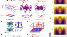 We first show that one can also realize SVL in an AFM system even without SOC. As shown in Fig. 1b, the AFM order breaks the time-reversal symmetry and generally induces a spin splitting between states \({\Psi }_{\bf{K}}^{\uparrow }\) and \({\Psi }_{\bf{K}}^{\downarrow }\) through strong exchange couplings, i.e., \({E}^{\uparrow }\ne {E}^{\downarrow }\) if there is no \({PT}\) symmetry39. One can prove that there must be another two spin-polarized states \({\Psi }_{{{\bf{K}}^{\prime}}}^{\uparrow }\) and \({\Psi}_{{\bf{K}}^{\prime}}^{\downarrow }\) but with switched energy \({E}^{\downarrow }\) and \({E}^{\uparrow }\) at the crystal symmetry-related valley \({\bf{K}}^{\prime}= C {\bf{K}}\), i.e., \({H}_{{{\bf{K}}^{\prime} }} {\Psi }_{{{\bf{K}}^{\prime}}}^{\uparrow} = {E}^{\downarrow } {\Psi }_{{{\bf{K}}^{\prime}}}^{\uparrow }\) and \({H}_{{{\bf{K}}^{\prime} }} {\Psi }_{{{\bf{K}}^{\prime}}}^{\downarrow } = {E}^{\uparrow } {\Psi}_{{{\bf{K}}^{\prime} }}^{\downarrow }\), where \(C\) is the crystal symmetry connecting the two AFM sublattices (more details in Sec. IA of the Supplementary Information (SI)). In other words, a crystal symmetry instead of time-reversal symmetry can also lead to SVL, which we refer to C-paired SVL. It is worth emphasizing that the spin splitting here is from exchange couplings between itinerant electrons and local magnetic moments, thus it could be as large as several eVs and SOC is no longer necessary.
