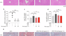 Primary hepatocytes were isolated from aged 8–12 weeks mice by liver perfusion. In short, mice were anesthetized with Tribromoethanol. Liver perfusion buffer was perfused through the portal vein, followed by the perfusion of liver digest buffer for 15 min. After this, the liver was excised, minced and filtered through a cell sieve (70 μm). Hepatocytes were separated via centrifugation at 1000 × g/min for 3 min, purified on 50% percoll. The cells were cultured in DMEM supplemented with 10% FBS and 1% penicillin–streptomycin in a 5% CO2 incubator at 37 °C. Palmitate (0.4 mm; Sigma) was added to the medium for different time point.