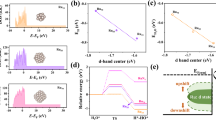 We then performed X-ray absorption near edge structure (XANES) and extended X-ray absorption fine structure (EXAFS) analyses to verify the strong metal/sulfur interactions. The Pt/S–C catalyst exhibited a considerably lower intensity of white line peak in the Pt L3-edge XANES spectra than Pt/S-free-C (Fig. 3b), even though both of them had a similar particle size (Fig. 2a, e). The white line intensity directly reflects the unoccupied density of states of Pt 5d orbitals37. The lower intensity of white line peak for Pt/S–C suggests that the S–C support can donate electrons to Pt nanoclusters, which leads to an electron-enriched state of Pt nanoclusters on S–C. Such electronic interaction between Pt and S–C support has been confirmed previously by the density functional theory (DFT) calculations38.
