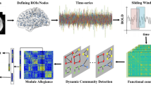 There is now extensive evidence demonstrating that the cognitive demanding n-back working-memory task engage or disengage core nodes of the salience (SN), frontoparietal networks (FPN), and default mode networks implicated in cognitive control20,21,22. Early research on the neural basis of cognitive control processes engaged during working memory has primarily focused on the dorsolateral prefrontal cortex in the middle frontal gyrus (MFG) based on observations of neuronal activity during online maintenance of task-relevant information23,24,25. Since then, non-human electrophysiological studies and human neuroimaging studies have consistently identified distributed frontoparietal regions involved in working memory including the anterior insula (AI), dorsomedial prefrontal cortex (DMPFC), anterior cingulate cortex, MFG, frontal eye field (FEF), and inferior parietal lobule (IPL)26,27,28,29. Meta-analyses of human neuroimaging studies have also highlighted consistent activation of these brain areas20,22,30,31. Notably, these regions overlap prominently with the SN and FPN19,32,33. In contrast, the posterior cingulate cortex (PCC) and ventromedial prefrontal cortex (VMPFC) encompassing the default mode network (DMN) are deactivated during cognitively demanding tasks21,34, but there have been suggestions that the degree of disengagement may have a direct impact on working-memory performance35,36,37. Other related research has suggested that the DMN may also encode task-relevant information during cognitively demanding tasks38,39. While these studies point to a highly consistent pattern of working-memory-related neural activity in the SN, FPN, and DMN, there have been no systematic investigations of their dynamic functional interactions and network properties.