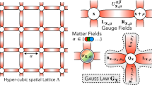 The links of the 3D lattice are uniquely identified by a couple of parameters (x, μ) where x is any site, μ is one of the three positive lattice unit vectors \({\mu }_{x}\equiv \left(1,0,0\right)\), \({\mu }_{y}\equiv \left(0,1,0\right)\), and \({\mu }_{z}\equiv \left(0,0,1\right)\). The gauge fields are defined on lattice links through the pair of operators \({\hat{E}}_{{\bf{x}},\mu }\) (electric field) and \({\hat{U}}_{{\bf{x}},\mu }\) (unitary comparator) that satisfy the commutation relation