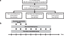 Vaccines were administered by trained vaccinators in accordance with the National Protocol or by patient specific direction8. At the time of vaccination the dose and batch number were recorded and uploaded to the National Immunisation and Vaccination System (NIVS). All HCWs were observed for a minimum of 15 min post vaccination in accordance with the MHRA temporary authorisation for the BNT162b2 vaccine and were asked to report any serious adverse events to the vaccination team or occupational health department. HCWs who received a COVID-19 vaccine elsewhere were asked to report the type of vaccine and date of administration to line managers.