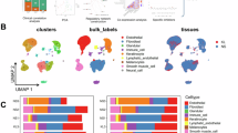 Gene expression levels for each cell were normalized by total expression, multiplied by a scale factor (10,000), and log-transformed. Batches were then regressed out, and scaled Z scored residuals of the model were used as normalized expression values. We defined the top 2000 most variable genes based on their average expression and dispersion as highly variable genes (HVG). We reduced the dimensionality of the data by performing the principal component analysis (PCA) on HVG. To identify cell subpopulations, clustering was performed on PCA scores using significant PCs assigned by a randomization approach proposed by Chung and Storey42,43. For those replicates (NS1, NS2, NS3 and KF1, KF2, KF3), the first 15 PCs were selected for clustering. To cluster cells, a K-nearest neighbor (KNN) graph constructed on a Euclidean distance matrix in PCA space was calculated and then converted to a shared nearest neighbor (SNN) graph, in order to find highly interconnected communities of cells44. Cells were then clustered using the Louvain method to maximize modularity45. To display data, the Unsupervised Uniform Manifold Approximation and Projection (UMAP) was applied to cell loadings of selected PCs, and the cluster assignments from the graph-based clustering were used. For cluster numbers higher than two, cluster-specific marker genes were identified by running the “find_all_markers” Seurat function with parameters logfc.threshold = 0.5 and test.use = “wilcox”. To identify differentially expressed genes between two clusters, we used the “find.markers” Seurat function with logfc.threshold = 0.5 and test.use = “wilcox”. All analyses described in this section were performed using Seurat R package version 3.0.1.