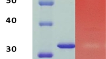 The xyloglucanase activity of wild-type and mutant Xanthomonas strains were monitored in plate assays. Cultures were grown overnight in LBON medium (1% m/v bacto peptone and 0.5% m/v yeast extract) at 30 °C and 200 rpm, diluted to OD600 nm 0.4, plated (0.5 µL) on solid NYG medium (5 g L−1 peptone, 3 g L−1 yeast extract, 20 g L−1 glycerol, 15 g L–1 agar) supplemented with 0.5% of tamarind xyloglucan (Megazyme), and grown for 40 h at 30 °C. Activity halos were revealed with 5 mg mL−1 Congo red and successive washes with 1 mol L−1 NaCl.