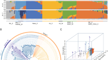 We investigated the occurrence of gene flow among populations using the ABBA-BABA test implemented in D-suite98,99 (Supplementary Note 10) and the parentage relationship between Armeniaca accessions by identity by descent (IBD) in PLINK v1.9096 (Supplementary Note 11). The fastSTRUCTURE software (version 1.0) was used to infer the Armeniaca population structure100. We ran fastSTRUCTURE on four datasets: (1) the whole Armeniaca dataset made of 917 individuals (after removal of the other Prunus species, outside of the Armeniaca section, and of interspecific hybrids), (2) P. mume (N = 348), (3) the rest of the Armeniaca species, without P. mume, that were sequenced in the current study (later referred as the set of individuals of other Armeniaca species, N = 555) and (4) the set of 202 unique and non-admixed accessions (Supplementary Notes 11 and 12). fastSTRUCTURE was run on a subset of 95,686 MAF > 0.05 filtered and LD pruned SNPs for the first three datasets while 9,613 SnpEff-filtered101, synonymous SNPs were used for the last dataset of 202 unique, non-admixed accessions. This dataset was also used for demographic inferences and the average number of nucleotide differences between genotypes (π) was drawn from each population102 using pixy103 and Stacks104. Other summary statistics (HE, HO, FIS, number of private alleles) were computed with Stacks104. Principal component analysis was performed using the smartPCA program of the EIGENSOFT package (version 6.1.4) in R software environment105.