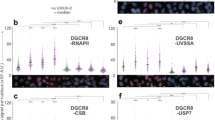 To assess the clinical relevance of DGCR8 expression to radiotherapy in patients, we analyzed a cohort of human breast cancer patients in which transcriptomic profiling was obtained from 286 tumor samples; 87% of these patients had received radiotherapy52. This analysis revealed that patients with high DGCR8 expression levels in their tumors had worse relapse-free survival than those with low DGCR8 expression levels (Fig. 1l; with two different probes), suggesting that overexpression of DGCR8 may lead to radioresistance and eventually relapse in patients with breast cancer.