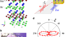 Further, we also conducted optical second-harmonic generation (SHG) polarimetry and microscopy and observed strong SHG signal (Fig. 1e, f), clearly demonstrating the inversion symmetry breaking in BaMnSb2. By rotating the polarization of both the fundamental and the SHG light by 90°, we observed a switch of the contrast in the SHG imaging, indicating the existence of 90° domain walls in the sample. As shown in Fig. 1f, the SHG polarimetry taken in domains A and B can be modeled with 2mm point group (twofold axis is along the a-axis in crystal). Details of this model described in Supplementary Note 2 and supplementary Fig. 2 reveal not only the twin walls visible on the surface but also suggest underlying orthorhombic domains below the surface.