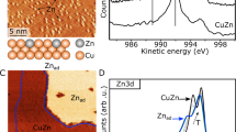 The CuZn alloy formation depends on the ZnO loading of ZnO/Cu-NCs catalysts. H2-TPR profiles of various ZnO/Cu-NCs catalysts (Supplementary Figs. 39 and 40) show that the appearance of reduction peak for supported large ZnO particles corresponds to the decrease in the percentage of CuZn alloy. This suggests that highly-dispersed ZnO is more facile to alloy with Cu substrates than ZnO aggregates during CO hydrogenation reaction, agreeing with previous results18. Reasonably, the dispersion of supported ZnO in ZnO/c-Cu catalysts increases with the surface area of c-Cu substrate (Supplementary Fig. 41). The CuZn alloy formation also depends on the structure of Cu NCs supports. Not all highly-dispersive ZnO species can form the CuZn alloy. With similar ZnO loadings and Cu NCs sizes, the percentage of CuZn alloy in used 1%ZnO/c-Cu–682 catalyst is much higher than in used 1%ZnO/o-Cu catalyst, suggesting more facile formation of CuZn alloy on c-Cu NCs than on o-Cu NCs. The percentage of CuZn alloy in different series of used ZnO/c-Cu catalysts does not follow an order of the surface areas of c-Cu NCs, but follows the same order of ZnO/c-Cu-34 > ZnO/c-Cu-682 > ZnO/c-Cu-109 to that of the step site density on various c-Cu NCs (Fig. 2a). These observations indicate that the step sites on c-Cu surfaces are the dominant site for the CuZn alloy formation during CO hydrogenation reaction. The CuZn alloy was previously observed to preferentially form at the step sites of Cu particles in industrial Cu/ZnO/Al2O3 catalyst for CO hydrogenation to CH3OH17.