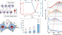 According to previous report, STEs emission correlates with increasing out-of-plane distortion of the Pb-Br-Pb angle in the inorganic sheets of the layered perovskites19. To investigated the structural origin of the STEs, a typical small group (-CH3) ortho-substituted molecule 2-CH3PMA was used to synthesize the perovskite (2-CH3PMA)2PbBr4. The bond length of C-CH3 is close to that of C-F and C-Cl. As expected, both powder XRD and single-crystal XRD measurements indicate (2-CH3PMA)2PbBr4 has the nearly same crystal structure as (2-FPMA)2PbBr4 and (2-ClPMA)2PbBr4 (Supplementary Figs. 6, 7 and Supplementary Table 3). As shown in Supplementary Fig. 8, the out-of-plane Pb-Br-Pb angles are all 180° for perovskites (2-CH3/F/ClPMA)2PbBr4, meanwhile, their in-plane Pb-Br-Pb angles show only very small difference. However, we did not observe obvious broadband emission from (2-CH3PMA)2PbBr4 (Supplementary Fig. 6). Inversely, the (3-ClPMA)2PbBr4 and (4-ClPMA)2PbBr4 without strong STE emission exhibit out-of-plane Pb-Br-Pb distortion. Thus, it can be concluded that emission features of these perovskites are ruled out of distortion origin of STEs as previous report and the crystal structure doesn’t determine the formation of STEs in our case.