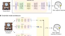 After selecting the numerically highest performing base-model and model layer based on distinct neural data (see above) we fit a two-stage linear mapping function26,73 to predict the brain measurements from the best network and layer. In this method, the mapping function consists of two separate stages that essentially codes the what and where of the neural function. The layer activations for an individual image consist of three dimensions, width, height, and depth. The width and height dimensions correspond to the spatial dimensions of the input while the depth dimension refers to the various encoding dimensions (i.e., convolutional filters) in that specific layer. The first stage of mapping, which learns the spatial correspondence between the model and the brain activity, consists of learning a unique spatial mask over the width and height dimensions of the activation map that best relates the model activations to the fROI responses. In the second stage of mapping, the spatially masked activations are then averaged over the spatial dimensions (i.e., the width and height of the activation map) and then multiplied by a second vector of learnable parameters that computes a weighted average of the different encoding dimensions (i.e., convolutional filters). The mapping function parameters are optimized to reduce the prediction error for the brain responses within each fROI. Because this method allows for per-fROI spatial masking of the feature set, it contains much fewer trainable parameters (compared to most regression methods such as ridge regression) and leads to more accurate predictions. However, this comes at a relatively high computational cost compared to the linear regression and was therefore only computed once we determined the best base-model and layer after the screening procedure.