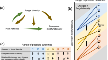 Ecosystem functioning (fluxes of matter and energy between trophic levels, and nutrient stocks and transformation rates) are affected by the collective activities of producer, consumer, and decomposer communities1,2,3,4. Plants and soil microorganisms are two major drivers of ecosystem functioning, being the main producers and decomposers of terrestrial ecosystems, respectively5,6,7. Reflecting this, a number of studies have explored how both the plant and soil microbial diversity independently relate to particular ecosystem functions8,9. However, ecosystem functioning is inherently multifunctional10, and awareness of this has led to a surge of studies exploring relationships between biodiversity and ecosystem multifunctionality, or the ability of an ecosystem to deliver multiple functions or services simultaneously3,11,12,13,14,15.