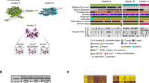 RNA of 59 samples (see Supplementary Data 1) were hybridized, in two batches, to Affymetrix Human Genome U133 plus 2.0 Array Plates (Santa Clara, CA) according to Affymetrix standard protocols. Raw CEL files were RMA78 normalized using R package affy 1.60.0. Batch effects were corrected with the help of the Bioconductor package SVA 3.30.1. The arrays were mapped to genes with a Brainarray Custom CDF (EntrezG version 23)79. Independent component analysis in k = 3 independent components (IC) was performed using R package MineICA 1.24.0 (JADE method)80,81. The genes with high negative (< −2.5) or positive contributions (>2.5) to IC were analyzed through pathway enrichment analysis (hypergeometric tests), seeking specifically signatures related to potential contamination by stromal cells. Genes with high positive contributions to IC #1 were found highly enriched in markers of stromal cells, and were discarded from clustering analyses.