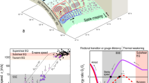 By varying \({\hat{T}}_{{{{{{\rm{e}}}}}}}\) and \({\hat{D}}_{{{{{{\rm{c}}}}}}}\) from 0 to 1 (almost all cases of fault friction properties), four rupture patterns can be obtained, and we show the results in a phase diagram of dynamic rupture (Fig. 1c). The rupture triggered at 0 s within the area of the nucleation zone (the assumed area for the elevated stress to trigger rupture) propagates according to different friction properties. In Fig. 1b, for the super-shear rupture, \({\hat{D}}_{{{{{{\rm{c}}}}}}}\) is 0.4, and \({\hat{T}}_{{{{{{\rm{e}}}}}}}\) is 0.8; for the sub-Rayleigh rupture, \({\hat{D}}_{{{{{{\rm{c}}}}}}}\) is 0.4, and \({\hat{T}}_{{{{{{\rm{e}}}}}}}\) is 0.4; for the self-arresting rupture, \({\hat{D}}_{{{{{{\rm{c}}}}}}}\) is 0.35, and \({\hat{T}}_{{{{{{\rm{e}}}}}}}\) is 0.1; and for the slow self-arresting rupture, \({\hat{D}}_{{{{{{\rm{c}}}}}}}\) is 0.88, and \({\hat{T}}_{{{{{{\rm{e}}}}}}}\) is 0.2. Each point in the phase diagram indicates a rupture simulation with the parameters of that point, which determines the resulting rupture style. The most important feature shown in the phase diagram is the delineation of the four areas that correspond to the conditions for super-shear, sub-Rayleigh, self-arresting and slow self-arresting rupture.