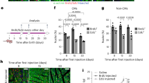 Our first analysis of these ProTracer mice was the quantification of cardiomyocyte cell-cycle activity over a 24-weeks period in normal adult hearts. We treated tamoxifen on adult mice at age of 8–10 weeks old (set as 0 week as a start). We collected hearts from the ProTracer mice on day 3 and week 4, 8, 12, and 24 after tamoxifen priming on these adult mice (Fig. 1d). We first performed flow cytometric analysis on the dissociated cardiomyocytes from digested hearts (Supplementary Fig. 2). FACS analysis of cardiomyocytes revealed the cumulative instances of cell-cycle activity occurring over time: the proportion of GFP+ cardiomyocytes increased from Week 4 to Week 24, eventually reaching 1.23 ± 0.068% (Fig. 1e). Considering our labeling efficiency, this amount of cell-cycling cardiomyocytes (~ 5% per year calculated from 1.23% in 6 months with ~ 50% priming efficiency) was consistent with previous isotope incorporation study reporting a yearly rate of cardiomyocyte DNA replication of 4.4%5. This trend was confirmed by manually counting of dissociated cardiomyocytes (Fig. 1f) as well as by immunostaining of heart sections with antibodies against GFP, the cardiomyocyte marker TNNI3, and the cardiomyocyte membrane marker WGA (Fig. 1g, h and Supplementary Fig. 3). Note that we detected no GFP+ cardiomyocytes in non-Tam priming control in any of the above analyses (Fig. 1e–h and Supplementary Fig. 3). We also dissociated cardiomyocytes for further analysis of their nucleation (Fig. 1i, j), and found that the percentage of mono-nuclear cardiomyocytes in the GFP+ population was significantly higher than that of the GFP– population (Fig. 1k). The above genetic results provided detailed quantification of cardiomyocyte cell-cycle activity from 3 days to 6 months’ duration in adult mammalian hearts during homeostasis.