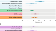 As a broad intervention, we found that banning all gatherings, including 1-on-1 meetings, had a large effect: a 26% [95% CI: 18–32%] reduction in \({R}_{t}\). By recording the number of persons and households allowed to meet, we can understand the effectiveness of various thresholds. We found no evidence for diminishing returns in the number of persons allowed to meet; in fact, the strictest thresholds had considerably larger effects than less strict ones. This result is consistent with previous studies on the English tier system—Tier 2, which limits gatherings to six people, had a small effect while Tier 3, which further limits gatherings to two people amongst other interventions, had a large effect20,21,38. The small effect associated with more lenient person limits (10 or higher) contrasts with estimates from the first wave, which commonly found bans on much larger gatherings to be effective2,13,15. The difference could be due to voluntary protective behaviours, which were absent pre-pandemic, such as avoiding crowds and distancing (Supplementary Note 1.1), but also due to limited adherence to rules on private mixing39. The results suggest that during an ongoing pandemic, infection control can no longer rely on reductions in transmission from banning gatherings with 10 or more people. Defining a “lockdown” policy as a ban on all gatherings and closure of all nonessential businesses, we estimate a total reduction in \({R}_{t}\) of 52% [95% CI: 47–56%].
