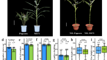 ZmACO2 expression was analyzed using developing ears that were collected from B73, two NILs, ZmACO2 promoter-edited lines (ACO2CR-pro1−ACO2CR-pro5), ZmACO2 overexpression lines (ACO2-OE1−ACO2-OE3), and 40 diverse inbred maize lines, respectively. Total RNA was extracted using TRIzol® Reagent (Life Technologies, Invitrogen, Carlsbad, CA, USA) according to the manufacturer’s instructions. Tissue samples were collected from B73 at various developmental stages, including seedling roots, seedling internodes, immature leaves, mature leaves, 2 mm ears, 5 mm ears, and 5 mm tassels. Total RNA of qEL7SL17 and qEL7Ye478 was extracted from immature ear stage 1 (2 mm ears at 10-leaf stage with inflorescence meristems (IMs) and spikelet pair meristems (SPMs)), and immature ear stage 2 (5 mm ears at 12-leaf stage with IMs, SPMs, and spikelet-meristems (SMs)). Total RNA of ZmACO2 promoter edited lines, ZmACO2 overexpression lines, and 40 diverse maize inbred lines were extracted from immature ears at the S1 stage. DNase I (TaKaRa Biotech, Dalian, China) was used to remove genomic DNA contamination. Oligo (dT) primers and M-MLV reverse transcriptase (Invitrogen, Carlsbad, CA, USA) were used to synthesize first-strand cDNA. Quantitative real-time PCR was performed using Universal SybrGreen Master Mix (Bio-Rad, Hercules, CA, USA) on the CFX96 Real-Time system (Bio-Rad). The maize Actin gene (Zm00001d010159) was used as an internal control. The relative expression of the gene was calculated by the 2−ΔCt method. The primers used for quantitative real-time PCR are listed in Supplementary Data 8.