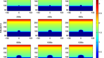 where the right-hand side represents the ponderomotive pressure force of the high-frequency electric field, \({\nu }_{{{{{{\rm{L}}}}}}}\) is the ion Landau damping operator, \({C}_{{{{{{\rm{s}}}}}}}=\sqrt{{k}_{{{{{{\rm{B}}}}}}}\left({T}_{{{{{{\rm{e}}}}}}}+3{T}_{{{{{{\rm{i}}}}}}}\right)/{m}_{{{{{{\rm{i}}}}}}}}\) is the IA speed, \({T}_{{{{{{\rm{i}}}}}}}\) is the ion temperature, and \({m}_{{{{{{\rm{i}}}}}}}\) is the ion mass. The ponderomotive force pushes the electrons away from regions of large-amplitude oscillatory electric fields, pulling the ions with them via the slowly varying space-charge electric field. The resulting density fluctuations act as a grating to scatter the EM wave, further enforcing the field. Beyond a threshold amplitude, this can give rise to an SBS instability. In the present model, the envelope field is solved using an implicit Crank–Nicholson method, while the IA wave equation is solved with an explicit scheme, so that the time-stepping can be done directly on the slow ion timescale with time-steps exceeding the oscillation period of the high-frequency wave80,81. To resolve the small-scale electrostatic waves due to Langmuir turbulence near cutoff for the cases of injected O mode waves, the grid size is locally decreased to 4 cm in the region \(z=219\) – \(220.5\) km. A time-step of \(\Delta t={10}^{-5}\)s is used, to resolve Langmuir turbulence with typical ion oscillation periods of \({10}^{-3}\) – \({10}^{-4}\) s. In Fig. 5, a Fourier method66,82,83,84 is used for the horizontal \(x\) and \(y\) variables, resulting in one-dimensional systems along \(z\) for each Fourier mode; the results in physical space are obtained via inverse Fourier transformation. In Fig. 5, the injected O mode wave is modeled as a Gaussian beam resolved by 1200 Fourier modes in either \({k}_{x}\) or \({k}_{y}\), covering a region \(\pm 0.2{k}_{0}\) in wavenumber space and \(\pm \pi /\Delta k\approx \pm 71\) km in space, where \(\Delta k=2\times 0.2{k}_{0}/1200\approx 4.4\times {10}^{-5}\,{{{{{{\rm{m}}}}}}}^{-1}\) is the wavenumber resolution. A numerical grid of 4 m grid size is used to resolve the solution in the vertical direction covering \(142\le z\le 242\,{{{{{\rm{km}}}}}}\). The angular width of the beam is taken to be \({\varphi =6.9}^{\circ }=0.12\) rad, corresponding to a beam waist radius of \(2/{k}_{0}\varphi =126\) m at ground \(z=0\). To carry out 2D or 3D full-scale simulations of the EM wave propagation and Langmuir turbulence over 10 s is not computationally possible with the present simulation methods and resources. Therefore, the longer simulations in Figs. 6 and 7 are carried out in one dimension, where the solution is assumed to vary only in the vertical direction; hence \({k}_{x}={k}_{y}=0\). The ion Landau damping operator \({\nu }_{L}\) is approximated via a sum representation in the IA wave equation using the ion Landau damping rates shown in Fig. 4e, while the electron Landau damping in \({\nu }_{{{{{{\rm{e}}}}}}}\) is approximated with a diffusion operator79. The EM waves are injected at the bottom boundary to propagate into the plasma, while downward propagating waves are absorbed at the bottom boundary via an outflow boundary condition.