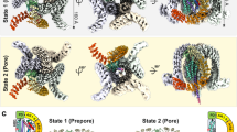 To calculate the protein properties, i.e., surface electrostatics, hydrophobicities, residue conservations, and transmembrane region predictions, the side chains were put back with ideal rotamers (Supplementary Fig. 6). The figures were prepared using UCSF Chimera and ChimeraX81, 82. The threshold values (sigma) were calculated by dividing the corresponding contour level by the root-mean-square (RMS) value. Multiple sequence alignment and the prediction of transmembrane helices were done using Clustal Omega87 and TMHMM server v2.088, respectively. The surface electrostatics was calculated in APBS89 and visualized by UCSF ChimeraX. These sequence features were illustrated by ESPript390 and Adobe Illustrator.