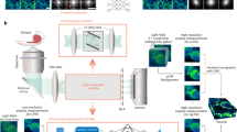 To address this problem, speckle illumination20, light-sheet illumination12, and confocal schematics21 have been proposed recently for additional optical sectioning. Despite the enhanced signal-to-background ratio (SBR), these approaches either require sample priors20, space constraints on sample geometry12 or complicated hardware modifications12,21. Moreover, the resolutions of these methods are usually much lower than the diffraction limit of whole objective numerical aperture (NA) due to the tradeoff between spatial and angular resolutions. By exploring the diffraction of the microlens at the image plane, scanning LFM (sLFM) can bypass the tradeoff and permit long-term high-speed subcellular imaging in mammals15, but it’s hard to apply confocal schematics in sLFM, restricting its performance in densely labeled samples.
