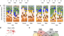 When all the data are analyzed together, we notice a limited fluctuation (maximum 2 Log 10-fold change) of each member of the GM15 gut microbiota’s load among the conditions tested (Fig. 2e). Therefore, we conclude that the GM15 community is stable upon adult colonization, among filial generations, during aging, upon mild dietary fluctuations, and can be transmitted efficiently by FMT.