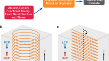We confirm these predictions by computing the topological charges directly from the MPB eigenstate solutions. To do so, we implement a numerical approach based on the analysis of the winding properties of photonic hybrid Wannier energy centers (WEC). WEC are accurately defined in the Methods section. There, we establish a mapping from electronic Wannier charge centers (WCC)38,39 to photonics and we perform a generalization of the photonic Wilson loop approach of Ref. 40 (initially implemented for 2D scalar waves) applicable to fully 3D electromagnetic (EM) vector fields. The results of this analysis are summarized in Fig. 1c: the top panel shows the electromagnetic Chern number Cz of the two lowest bands calculated on 2D planes orthogonal to the magnetization axis. We observe a sharp discontinuity ΔCz = ±1 at the wavevector of each Weyl point. This is similarly reflected in the winding of the Wilson loop eigenvalues on two selected planes, as shown in the bottom panel. From the discontinuity in the section Chern number at each Weyl point, we deduce the associated topological charge41, confirming that q± = ±1, as predicted by the k ⋅ p model.