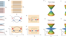 We also study the evolution of topological edge states with varying electric field by calculating the surface local density of states (LDOS) from the imaginary part of the surface Green’s function72. Figure 2c shows the edge states of 7% strained silicate. On the (100) edge (i.e. the zigzag direction for the Si atoms), there is an edge arc connecting two adjacent nodes at the neighbouring \(\overline{{{\Gamma }}}\) points. Upon increasing electric field, new band crossing points appear around \(\overline{{{\Gamma }}}\). At 1.8 eV/Å, there are two clear projections of the new Dirac cones on the (100) edge around 17.36 THz. We calculate the Zak phase γ (i.e. the Berry phase along a non-contractible path of the Brillouin zone which is here quantised to {0, π} by the C2T symmetry) in gap Δ10 and Δ11 at 0.0 and 1.8 eV/Å. As shown in Fig. 2c, a Zak phase of zero corresponds to the emergence of the edge states, while γ = π leads to vanishing edge states. This indicates that the band Wannier states (the Wannier states are the Fourier transform of the Bloch eigenstates) have their center (the “band centers”) shifted from the center of the atomic Wannier states (the “atomic centers”), leading to a charge anomaly and, following, the localisation of an edge state. Furthermore, the fact that the edge states appear when the Zak phase is zero simply means that the band centers occupy the center of the unit cell, while the atomic centers lie on the boundary of the unit cell15,73. Indeed, the \({{\Bbb{Z}}}_{2}\) quantised Berry phase is a good quantum number in 1D, which indicates the band center (i.e. its Wyckoff position)74.