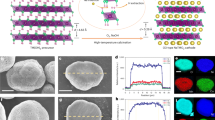 The Ni0.4Mn0.4Co0.2(OH)2 precursor was synthesized through a co-precipitation method. The transition metal sulfate solution (Ni:Mn:Co = 0.4:0.4:0.2 in molar ratio) with a concentration of 2 mol/L was fed into a continuously stirred tank reactor (4 L) under N2 protection. Concentrations of 4 mol/L NaOH and 5 mol/L NH3·H2O were also fed into the tank, respectively. The pH value was controlled at 10.8 during the co-precipitation process by adjusting the NaOH feeding rate69. The Ni0.4Mn0.4Co0.2(OH)2 precursor was obtained by filtering and washing with deionized water followed by vacuum drying at 105 °C overnight. To synthesize highly strained O3 NaNi0.4Mn0.4Co0.2O2, Ni0.4Mn0.4Co0.2(OH)2 precursor and NaOH were mixed with a molar ratio of 1:1.05 using a rotary mixer. The mixture powder was then pressed into a pellet and heated to 850 °C for 24 h with a heating rate of 3 °C/min under an air atmosphere. The sample was then quenched from 850 °C to room temperature in air and stored inside a glovebox for further characterization. As a comparison, the P1/P2/O3 NaNi0.4Mn0.4Co0.2O2 was synthesized by naturally cooling from 850 oC to room temperature.