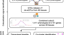 Our analysis excluded SNPs that have not achieved a selection threshold in the GWAS of I, i.e. points for which p-value > λ (our main analysis used λ = 0.001 as the default threshold). Exclusion of SNPs using a lower (closer to 0) threshold, that includes fewer SNPs, could reduce the efficiency by decreasing the size of the underlying cluster GI. affecting I only. When SNPs are included using a higher (closer to 1) threshold, that includes more SNPs, it is likely that a fraction of these additional SNPs will not affect I (null SNPs). In the presence of these null SNPs, our model (Eq. (12)) is not correct, providing only an approximation of the underlying full model shown in Eq. (10). However if the majority of the null SNPs belong to the cluster (G..) affecting neither I nor P, one would expect an enrichment of the probability concentration π4 of SNPs scattered around the origin. Since our model identifies the GI. SNPs as the points scattered closely around the line \({\hat{\beta }}_{GP}^{\prime}={b}_{1} \,{\hat{\beta }}_{GI}\), which goes through the origin by definition, such an enrichment is approximately captured by \({\pi }_{1}^{* }\), i.e., \({\pi }_{1}^{* }\approx {\pi }_{1}+{\pi }_{4}\) at the true slope (b1). Nevertheless, if a very large λ is used, then large value of π4 may result in biased or imprecise estimations of π1 and b1. One might expect there would be an optimal threshold for SNP selections as is typically observed in risk prediction using polygenic risk scores21,26. The effect of modifying this threshold is examined in simulation studies (see ‘Simulation setup’).