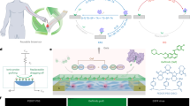 The electrochemical activity of ZnGa2O4 was further characterized in different concentrations of glucose solution to determine the relationship between the afterglow signal and the electron transfer. ZnGa2O4 and GOD were sequentially coated on the electrode surface, and the electrode was employed for cyclic voltammetry in a solution containing different concentrations of glucose (Fig. 2b, c). While the GOD coating resulted in total passivation (Supplementary Fig. 1), the ZnGa2O4/GOD coating exhibited obvious oxidation and reduction peaks of GOD (Supplementary Figs. 2 and 3), in part due to ZnGa2O4-induced electron transfer. The electrochemical performance of ZnGa2O4/GOD coating was detected in glucose solution (Fig. 2d), the reduction peak currents gradually decreased with glucose addition, that is, the consumption of oxidized GOD provides routes for the electronic transduction occurring at the ZnGa2O4/GOD surface. The afterglow signal was demonstrated to be proportional to the reduction peak current by quantitative analysis, leading to a better understanding of the essential mechanisms associated with the afterglow signal and the electron transfer (Fig. 2e).