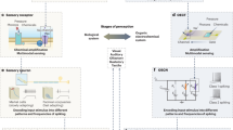 Organic electrochemical transistors (OECTs), which are modulated by a gate-driven ionic doping/de-doping of the organic bulk channel material25, resemble the ion-driven processes and dynamics of biological systems. Compared to OFETs, OECTs operate at considerably lower voltages (<1 V), have a higher transconductance, maintain excellent threshold voltage stability, demonstrate strong ion concentration-dependent switching properties28, and are in general highly biocompatible29. Aside from their use as chemical, physical, and biochemical sensors, they have been implemented as artificial synaptic devices12,14,16,17,30 that exhibit both long and short-term plasticity. The robust device architecture and the solubility of the organic materials in benign solvents have also enabled the facile fabrication of large-scale printed OECT-based digital circuits31,32,33. These properties make OECTs the ideal candidates for developing printed, biocompatible artificial spiking neural circuits with ion-mediated spiking mechanisms closely resembling the signaling characteristics of biological systems.