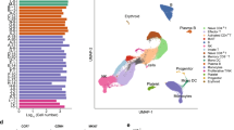 Unsupervised UMAP clustering of single-cell RNA-seq data of PBMCs identified 17 distinct immune cell populations (Suppl. Fig. 2a, b). The subclusters were integrated into the following immune cell populations: T cells, B cells, monocytes, NK cells, myeloid dendritic cells, plasmacytoid dendritic cells, plasma cells, proliferating cells, and gamma delta T cells (Fig. 1f, g). T cells were further differentiated into CD4+ (Population 5), CD8+ (Populations 1, 4, 8), and γδ T cells (Population 13). The top cluster defining genes of the overarching cell types are depicted in Suppl. Fig. 2a. Consistent with our flow cytometry data, cell-based clustering revealed no major differences between cohorts (Fig. 1g).