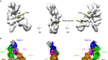 The first roughly two-thirds of every coronavirus genome consists of one open reading frame (ORF1) encoding 16 non-structural proteins (nsps)11. A stop codon near the middle of ORF1 partitions it into an upstream ORF1a and downstream ORF1b. While some ribosomes stop after translating a polyprotein from only ORF1a (nsps 1–11), the FSE causes a fraction of ribosomes to “slip” backward by 1 nt, bypass the stop codon, and translate a polyprotein from the entire ORF1ab (nsps 1–10, 12–16)6. Several proteins unique to ORF1ab are central to RNA replication and transcription, including the viral RNA-dependent RNA polymerase (nsp12) and helicase (nsp13)7,12. Studies on multiple coronaviruses have shown that an optimal ribosomal frameshifting rate is critical, and small differences in the percentage of frameshifting lead to dramatic differences in genomic RNA production and infectivity. Therefore, the FSE has emerged as a major drug target for small molecules that can influence the rate of ribosome slippage and is under active investigation to be used as a treatment against SARS-CoV-213,14,15,16.