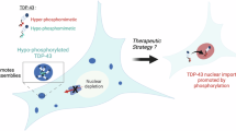 Research on LLPS is unveiling the molecular processes regulating the arrangement of membrane-less organelles. Heteronuclear ribonucleoprotein (hnRNP) LLPS is amply reported but whether and how this process is regulated in cells is poorly understood20. In the case of TDP-43, RNA binding prevents its phase separation in vitro and reduces droplet formation in vivo21. Wild-type (wt)TDP-43 is capable of going into liquid droplets but pathological mutants seem to form more resilient droplets. While the C-terminal glycine-rich domain of TDP-43 seems to play a crucial role in the formation of phase-separated droplets, the N-terminal domain may also contribute to the aggregation process22,23,24. Thus, the regulation of TDP-43 RNA binding could be pivotal in the pathophysiology of TDP-43. The molecular pathways regulating the disengagement from RNA are only beginning to be described.