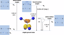 First, we approximate the singlet and triplet excitation energies by \({e}^{\uparrow }{a}_{1}^{\downarrow }\) and \({e}^{\uparrow }{a}_{1}^{\uparrow }\) electronic configurations (arrows represent the respective spin-up and spin-down spin channels), respectively, in C3v symmetry without SOC. The calculated ZPL energies are 1.062 eV and 0.985 eV, respectively. These energies are significantly smaller than the photo-ionisation threshold energy, thus C\({}_{\,{{{{{{\rm{S}}}}}}}\,}^{0}\) is a photostable quantum emitter in the telecom wavelength region. Furthermore, a high spin triplet state exists that may be used as a qubit.