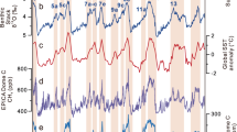 To confirm the age model (4.3–0.8 Ma), a total of 344 samples were collected for carbonate (CaCO3) content, δ18Oc, and δ13Cc measurement (Fig. 3a–c). The obvious fluctuations in all three records indicate potential orbital cycles (Fig. 2a–c). If our magnetostratigraphy-based age model is corrected, we should resolve orbital cycles from this record. We used these high-resolution records (Supplementary Fig. 3a–c) to carry out time-frequency analysis. Power spectral analysis and Fast Fourier transformation (FFT) were performed using Acycle software59. Using the untuned age model, spectral analysis on CaCO3 content, carbon, and oxygen isotope records resolves orbital cycles, indicating eccentricity, obliquity, and precession (Supplementary Fig. 5b, c), giving us confidence in the age model. To better explore the paleoclimate change during the Plio-Pleistocene climate transition, the sampling rate of CaCO3 content and isotope samples is higher (~12 kyr) for the time interval from 4.3 to 1.8 Ma. For the time interval between 1.8 and 0.8 Ma, the sampling rate of CaCO3 content varies between ~12 and ~20 kyr while the sampling rate of isotope samples ranges from ~40 to ~130 kyr (Supplementary Fig. 5).