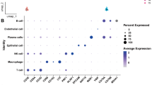 A total of six clusters present in the myeloid lineage with the expression of specific marker genes, including one monocyte (Mono_FCN1), two macrophages (Macro_c1_SPP1 and Macro_c2_CCL18), and three DCs (DC_c1_CD1C, DC_c2_XCR1, and DC_c3_CD1A) (Fig. 4a, b and Supplementary Data 6). Macrophages and CD1a + DCs (DC_c3_CD1A) were significantly enriched in tumors compared with paired non-tumor tissues, while monocytes, CD1c+ DCs (DC_c1_CD1C), and cDC1 DCs (DC_c2_XCR1) showed the opposite trend (Supplementary Fig. 7d). Indeed, we observed that SPP1+ macrophages, which have been reported in colon cancer and closely interact with cancer-associated fibroblasts (CAFs)26, were more infiltrated in S100P-SPP1 + iCCApps, while CCL18+ macrophages, which were abundant in advanced hepatocellular carcinoma27, were mostly infiltrated in S100P + SPP1− iCCAphl (Fig. 4c, d). Though both macrophages subsets have been defined as tumor-associated macrophages, they varied in signaling pathways and metabolic features28 (Supplementary Fig. 8a, b). Consistently, we found that SPP1+ macrophages showed an increased level of oxidative phosphorylation and glycine, serine, threonine, and tyrosine metabolism, while CCL18+ macrophages had elevated cytokine–cytokine receptor interaction, nitrogen, and riboflavin metabolism (Supplementary Fig. 8c). By calculating pro-/anti-inflammatory and M1/M2 polarization scores29, we found that SPP1+ macrophages were more potent in both pro- and anti-inflammatory responses and skewed toward M1 polarization (Fig. 4e, f). In contrast, CCL18+ macrophages showed a dominant M2-like phenotype with the high expression of CD163, MARCO, and CSF1R, suggesting their stronger tumor-promoting role than SPP1+ macrophages (Supplementary Fig. 8d). Immunostaining on the TMA cohort further confirmed that SPP1+CCL18− macrophages were more abundant in S100P-SPP1 + iCCApps, while SPP1−CCL18+ macrophages were mostly enriched in S100P + SPP1− iCCAphl (Fig. 4g, h), which were again validated by the results from Jusakul et al.’s dataset20 (Supplementary Fig. 8e). Together, these results indicate that iCCAphl has a unique immune ecosystem, with increased CCL18+ macrophages, reduced CD3+ T and CD56+ NK cells as compared with iCCApps.