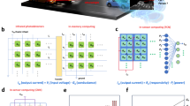 The above results show that the bP-PPT devices can be programmed both electrically and optically. The programmed state is non-volatile and can be read out either electrically by measuring the device’s conductance or optically by measuring its photoresponsivity. In both cases, the devices are operated in the linear regime and thus can be utilized for analog computing. Such a hybrid of multifunctional operation modes enables the utilization of a bP-PPT array to implement a mixed-mode optoelectronic neural network system. The same bP-PPT array can act as both the optical frontend to receive and preprocess optical images and an electrical processor with in-memory computing to post-process the images (Fig. 3a).