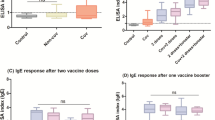 The most abundant antibody in the mucosal sites is IgA and it has been associated with virus neutralization in SARS-CoV-2 patients32. Although the serum and mucosal IgA do not have the same source and; therefore, have different roles, the measurement of circulating IgA antibodies provides further information on vaccine responses27. We observed that serum IgA responses were boosted in previously naturally infected individuals who received any of the two COVID-19 vaccines included in our study. This is an expected feature as the virus main entry is the upper respiratory mucosal tract, inducing mucosal-derived IgA. The circulating IgA from non-primed individuals could originate from bone marrow. However, other production sites are possible33. We cannot confidently say which body compartment originates the elevated and lasting serum IgA from in infectious primed individuals. Still, the notable difference in IgA responses between the two groups likely reflects differences between mucosal viral exposure in the airways and systemic vaccine exposure. Nevertheless, an increased peak was noticed in non-previously infected individuals after 60 days from BNT162b2 vaccination. This could be a sign of an improved immune response to the vaccine when no previous infection has occurred that might be related to the shorter interval between doses, as the IgA peak appeared sooner in those individuals who were administered earlier with the second dose.
