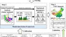 Machine learning methods have become popular in Earth sciences in recent years, enabling the discrete classification of important geo-spatial variables which are hard to map, such as clouds31, soils32, and forest cover33; but also estimation of dynamic variables, such as carbon fluxes34, precipitation35, or river discharge36. In fact, machine learning models trained on in situ measurements of E and other hydro-meteorological covariates, have already been used to estimate global E34. However, pure machine learning–based approaches have several disadvantages in realistically modeling Earth system processes. Machine learning models do not obey the physical limits which constrain different scales, such as the closure of water and energy balances. Further, the black-box nature of machine learning hinders the interpretability, an important requirement if the influence of individual covariates needs to be realistically represented to improve process understanding. More importantly, the use of pure machine learning methods for specifically estimating Et at global scales is hindered by the fact that in situ observations of Et have a small footprint which is not representative of Et at the coarser grid scales at which global models operate.