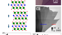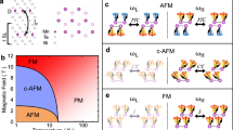 Magnetic exchange parameters were obtained by considering a model spin Hamiltonian of the form \(H\,=\,-\mathop{\sum}\limits_{\left\langle {ij}\right\rangle }{J}_{{ij}}{S}_{i}\,\cdot\ {S}_{j}\), where \({J}_{{ij}}\) includes intralayer exchange parameters J1 and J2 and interlayer exchange parameter \({J}^{\perp }\). A \(\sqrt{2}\) × \(\sqrt{2}\) × 1 supercell of the conventional cell was used get the intralayer exchange parameters, while a 1 × 1 × 2 supercell of the primitive cell was used to get the interlayer exchange parameter. Γ-centered k-point meshes of 4 × 4 × 1 and 4 × 4 × 4 were used in the respective calculations.