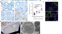 For immunohistochemical staining, paraffin-embedded sections were deparaffinized and incubated with primary antibodies at 4 °C overnight and secondary antibodies at room temperature for 1 h. Primary antibodies and secondary antibodies are described in the supplementary Table. Nuclei were counterstained by Hoechst 33342 (Sigma-Aldrich). positive cells in lungs were randomly counted from different visions of slides by confocal microscopy. 12 views in each lung section were counted and averaged cell numbers per 0.04 mm2 were used to define the distributions of positive cells in the lung tissues43. Living cells in culture were directly fixed in 4% paraformaldehyde for 25 min, followed with 15 min permeabilization in 1% triton X-100. For immunofluorescence, cells or tissue sections were immunostained with antibodies and counterstained with 4,6-diamidino-2-phenylindole. Adjacent sections stained with H and E were used for comparison. The antibodies used for immunostaining experiments are listed in Supplementary Table 1.