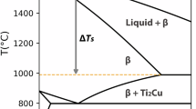 In order to calculate α/β and α/Ti2Cu phase interface energies, we have constructed interfacial structural models based on the experimental orientation relationship of (0002)α//(0\(\bar{1}\)3)Ti2Cu//(011)β and [11\(\bar{2}\)0]α//[100]Ti2Cu//[1\(\bar{1}\)1]β(Fig. 3c). 24 atoms were used for building (\(\bar{1}\)100)α-(21\(\bar{1}\))β interface model and 90 atoms were used for building (0002)α-(0\(\bar{1}\)3)Ti2Cu interface model. For an interface model consisting of two phases M and N, the interfacial energy can be expressed as: