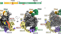 Bacmids for protein expression were made in DH10EMBacY cells79. For the generation of V0 virus, bacmids were transfected into SF21 insect cells in SF-4 Baculo Express medium (Bioconcept) at a density of 0.8 × 106 cells/mL. YFP fluorescence was monitored as a proxy for transfection efficiency and cells were kept at a density of 0.8 × 106 cells/mL until 100% of cells showed YFP fluorescence. The supernatant, containing the V0 virus, was subsequently isolated and utilized to infect High Five cells at a 1:10 through 1:20 ratio. For protein expression High Five cells were kept at a density of 1.0–1.2 × 106 cells/mL. Protein expression was allowed to proceed for 48 h before cells were harvested by centrifugation. Cell pellets were resuspended in 60 mL (per 1 L expression culture) lysis buffer (for NELF: 20 mM Na-HEPES pH 7.4, 300 mM NaCl, 10% (v/v) glycerol, 30 mM imidazole, 2 mM DTT; for DSIF: 50 mM Tris-HCl pH 8.0, 150 mM NaCl, 2 mM DTT) supplemented with the protease inhibitors pepstatin A (1 µg/mL), leupeptin (1 µg/mL), benzamidin-hydrochloride (0.2 mM), and phenylmethyl sulphonyl fluoride (PMSF) (0.2 mM). Cells were directly used for protein purification or flash-frozen in liquid nitrogen and stored at −80 °C.
