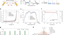 Organic solar cells were fabricated on glass substrates commercially pre-coated with a layer of indium tin oxide (ITO), based on the inverted structure: ITO/PEDOT:PSS/active layer/PFN-Br/Ag. Before fabrication, the substrates were consecutively pre-cleaned by an ultrasonic bath of detergent, deionized water, acetone, and isopropanol, and then treated in an ultraviolet ozone generator for 15 min. Then, a thin PEDOT:PSS (Baytron P AI4083) layer was spin coated onto the substrates at 4500 rpm (~20 nm thick) for 30 s and annealed at 170 °C for 20 min. The substrates were placed into a glovebox and all active layers were spin coated from 17.6 mg mL−1 (PM6:acceptor = 1:1.2) chloroform solution at 3000 rpm for 30 s with different additives. Detailed device fabrication conditions are summarized in Supplementary Tables 9–11. Then, a 5 nm PFN-Br film was deposited as the cathode buffer layer by spin-coating of a solution of 0.5 mg mL−1 PFN-Br in methanol. Finally, the Ag (100 nm) electrode was deposited by thermal evaporation. The device was completed with an active area of 0.0925 cm2, as defined by the overlapping area of ITO and Ag.