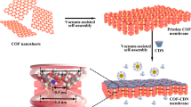 The rejection performances of COFs membrane were measured by nanofiltration process using a cross-flow filtration device. The membrane tube was equipped into a home-made tubular module, and then a dye aqueous solution (50 mg/L) was recycled by a diaphragm pump with operating pressure of 5 bar. Before measurement, the filtration system was cycled 0.5 h to reach a steady state. The water permeance was determined by the volume of permeate collected during 20 min. The concentrations of dyes in the feed and permeate were analyzed by a UV–vis detector to calculate the rejection rate.
